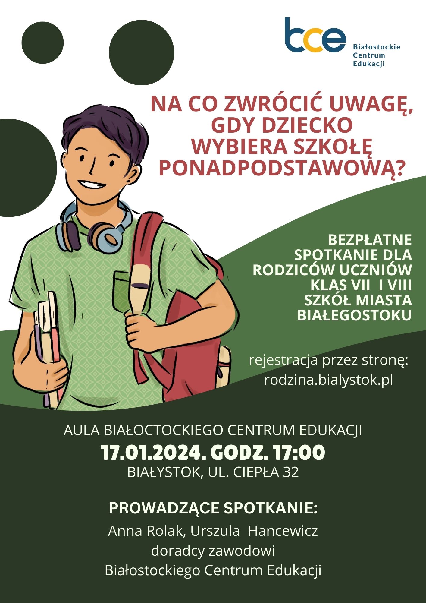 Celem spotkania jest przekazanie ważnych informacji dotyczących m.in. czynników wyboru szkoły ponadpodstawowej, systemu edukacji w Polsce i specyfiki nauki w poszczególnych typach szkół ponadpodstawowych, oferty edukacyjnej białostockich szkół średnich.