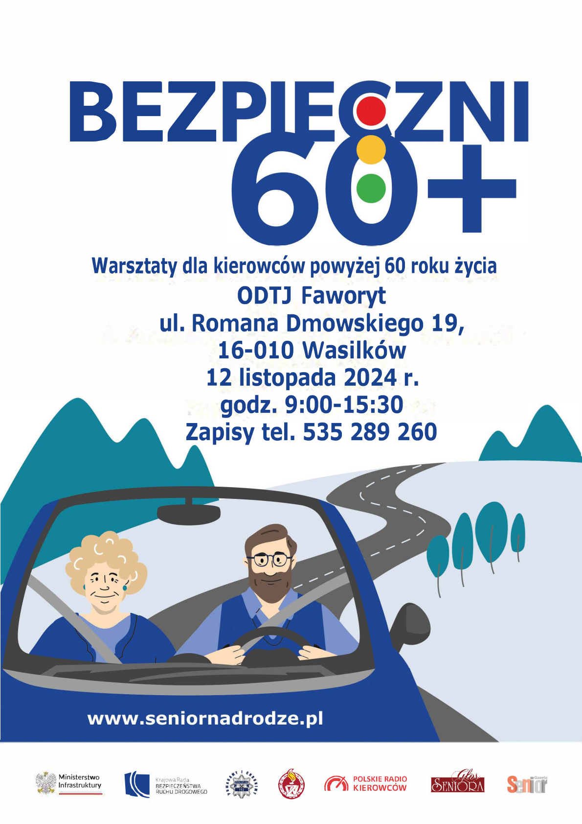 Aby wziąć udział w bezpłatnych warsztatach należy wypełnić formularz zgłoszeniowy na stronie www.seniornadrodze.pl lub dokonać telefonicznego zgłoszenia pod numerem telefonu 535 289 260. Przed rozpoczęciem warsztatu obowiązkowo należy podpisać oświadczenie uczestnika warsztatów bezpieczeństwa ruchu drogowego o wyrażeniu zgody na przetwarzanie danych osobowych, m.in.: w zakresie wizerunku, który zostanie Państwu przekazany przez pracownika Polskiego Instytutu Rozwoju.