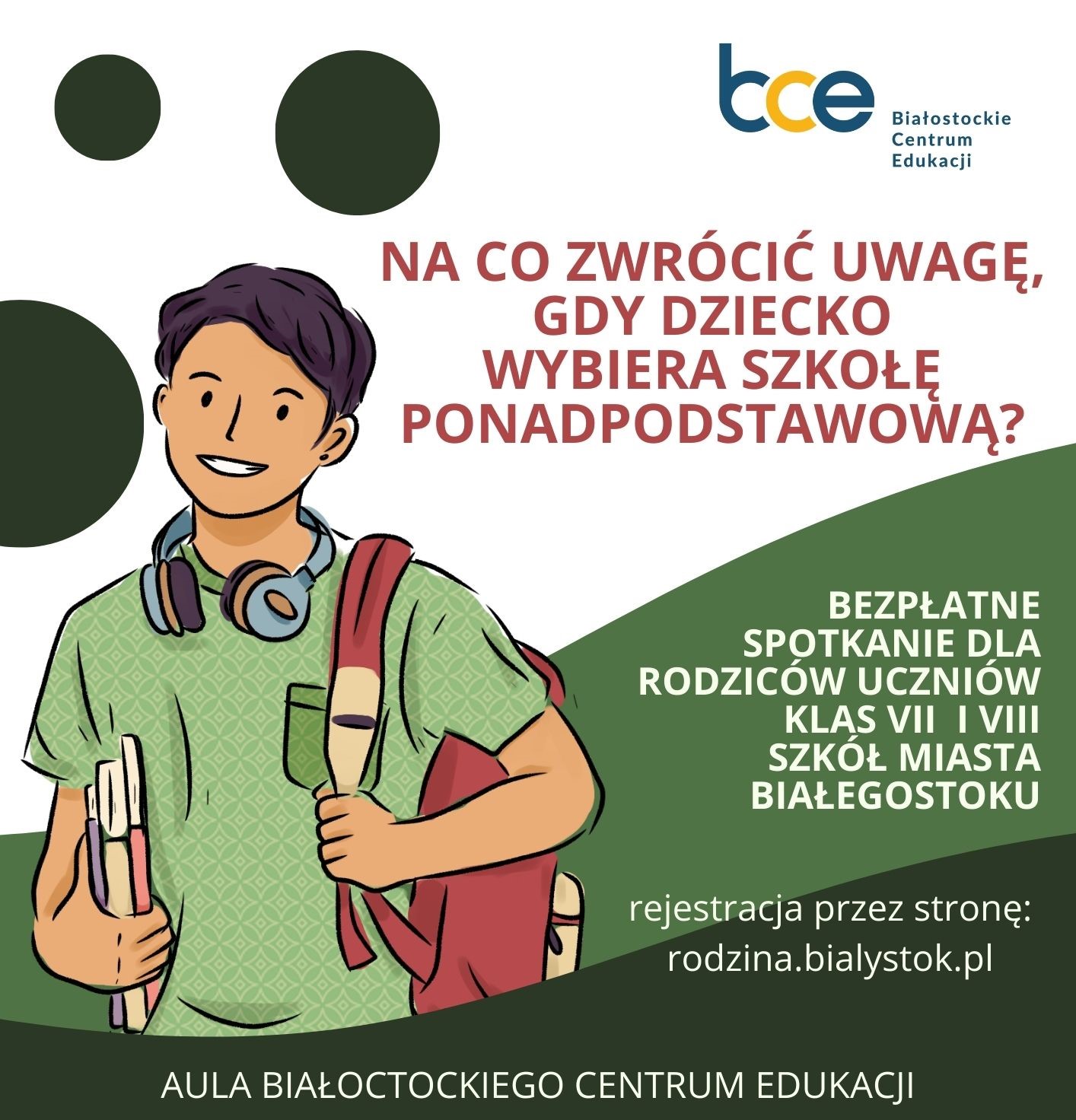 Celem spotkania jest przekazanie ważnych informacji dotyczących m.in. czynników wyboru szkoły ponadpodstawowej, systemu edukacji w Polsce i specyfiki nauki w poszczególnych typach szkół ponadpodstawowych, oferty edukacyjnej białostockich szkół średnich.