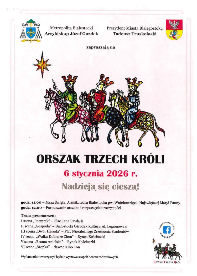 We wtorek (6 stycznia 2026 r.) ulicami Białegostoku tradycyjnie przejdzie Orszak Trzech Króli. Białostoczanie w taki sposób będą obchodzić święto Objawienia Pańskiego już po raz trzynasty.