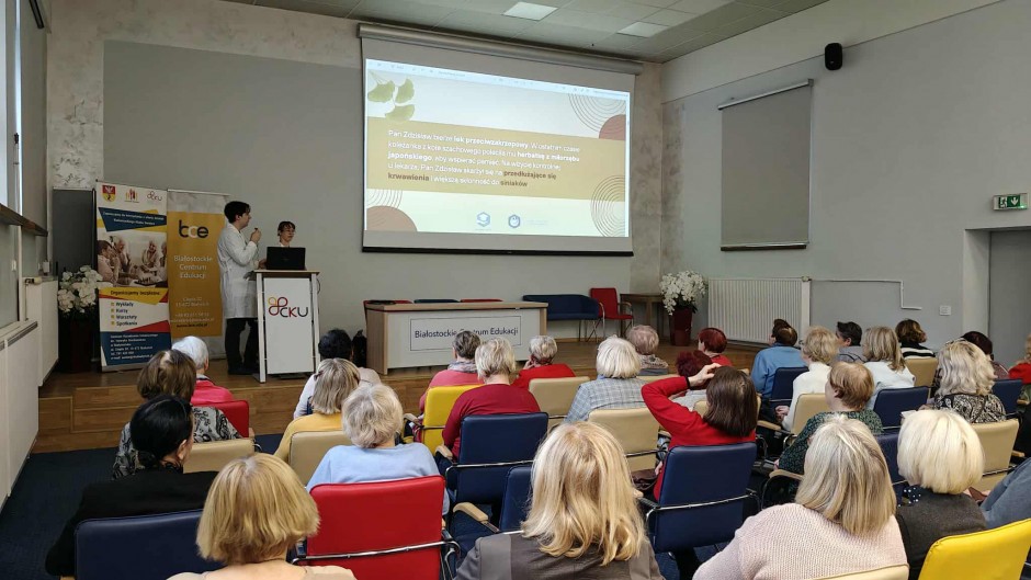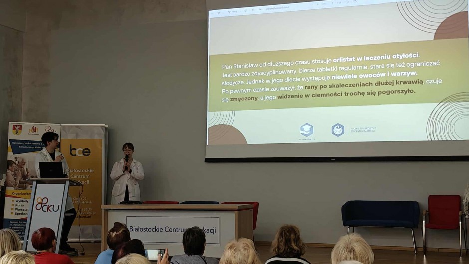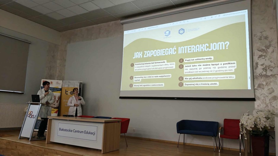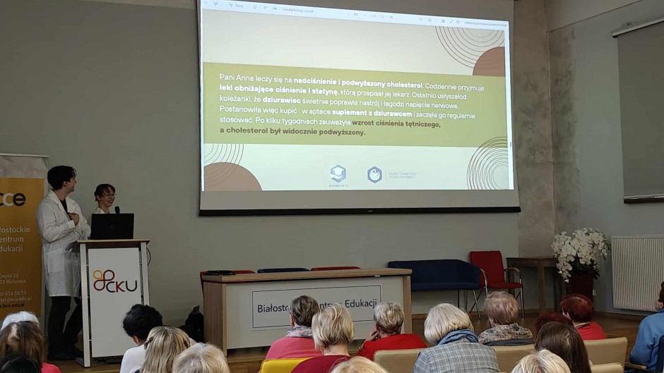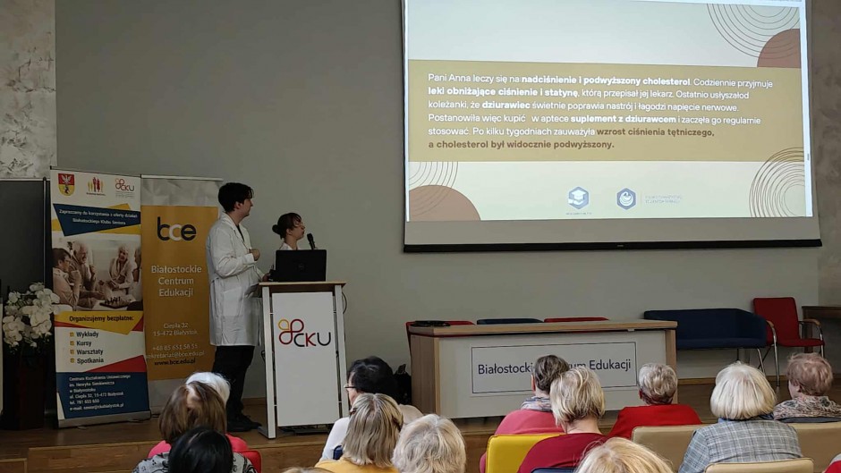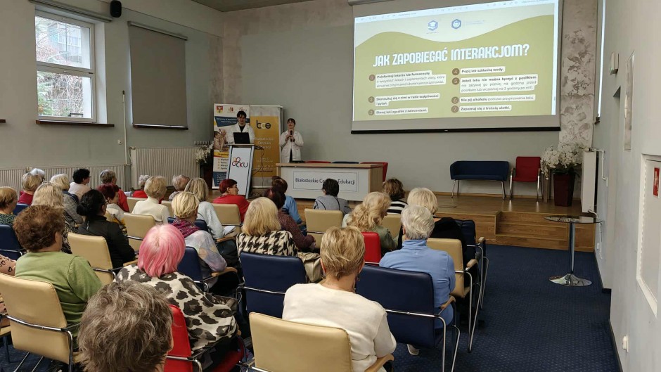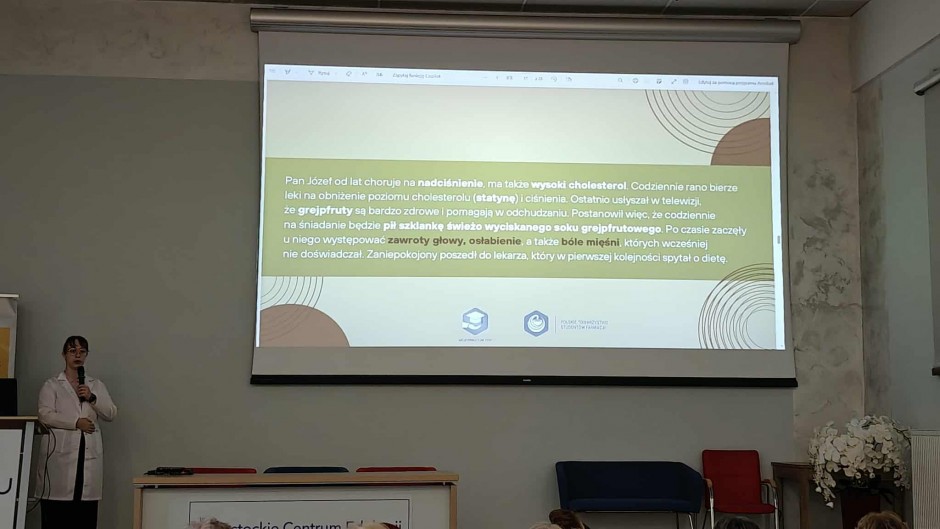 Strona główna / Galeria / Prelekcja „Farmacja na talerzu - o interakcjach leków z żywnością” Prelekcja „Farmacja na talerzu - o interakcjach leków z żywnością” Tweetnij Dodano: 2025-11-17 Autor: Białostocki Klub Seniora
