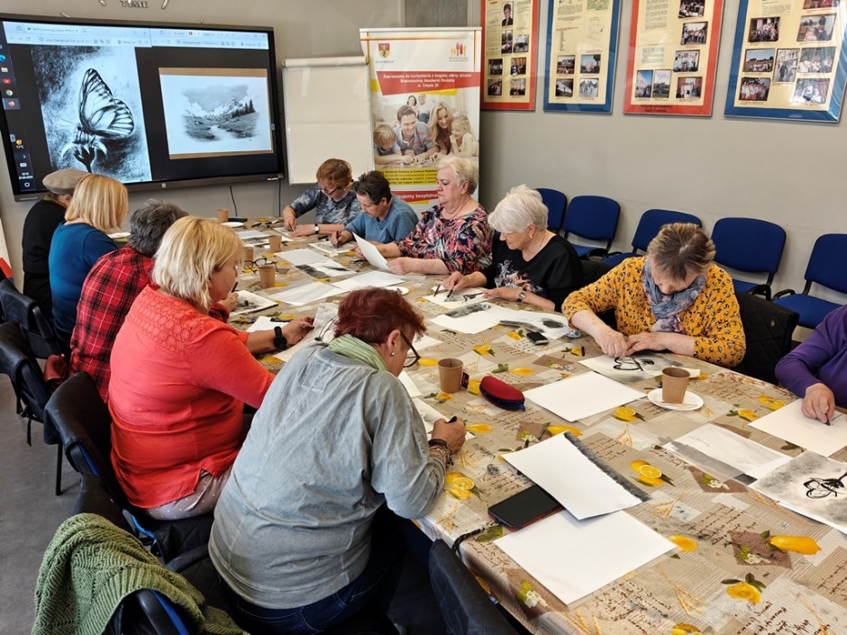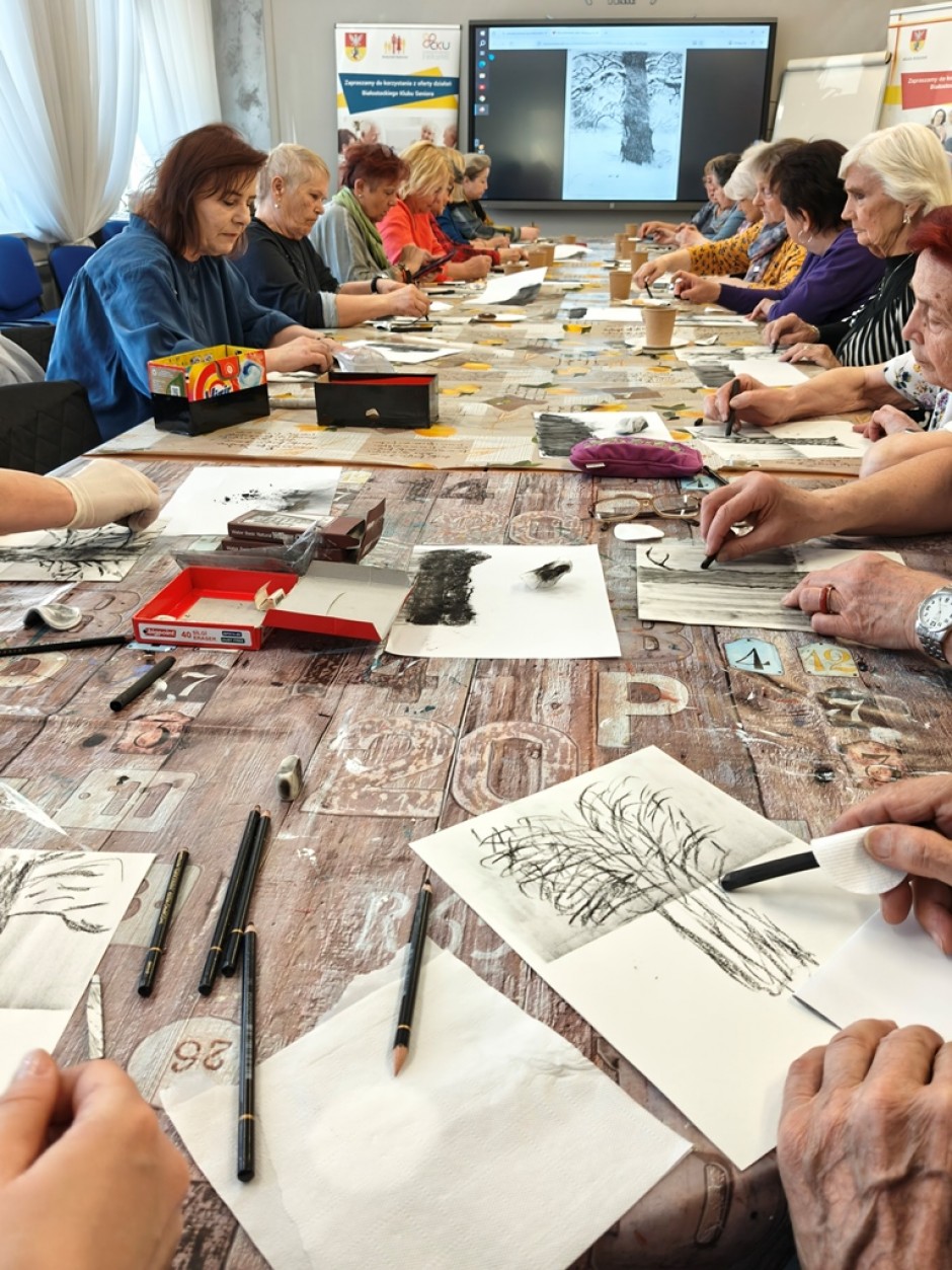 Strona główna / Galeria / Warsztaty malarstwa dla seniorów - rysunek węglem Warsztaty malarstwa dla seniorów - rysunek węglem Tweetnij Dodano: 2026-04-21 Autor: Białostocki Klub Seniora