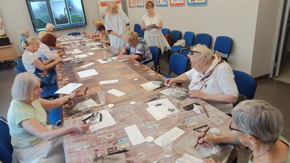 Strona główna / Galeria / Warsztaty malarstwa dla seniorów Warsztaty malarstwa dla seniorów Tweetnij Dodano: 2024-05-27 Autor: Białostocka Akademia Rodziny