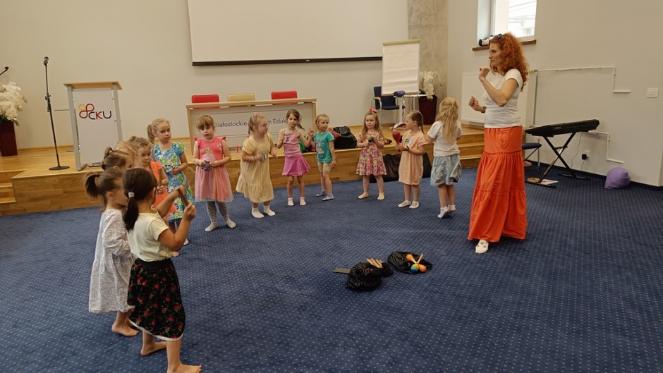 Strona główna / Galeria / Zajęcia umuzykalniające dla dzieci w wieku 4-5 lat Zajęcia umuzykalniające dla dzieci w wieku 4-5 lat Tweetnij Dodano: 2024-06-06 Autor: Białostocka Akademia Rodziny