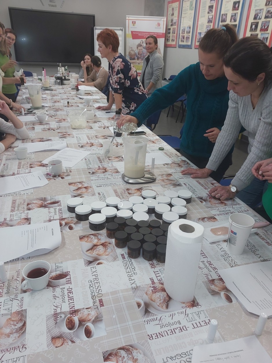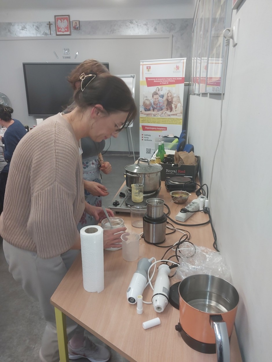 Strona główna / Galeria / Warsztaty „Kosmetyki bez chemii” Warsztaty „Kosmetyki bez chemii” Tweetnij Dodano: 2024-10-18 Autor: Białostocka Akademia Rodziny