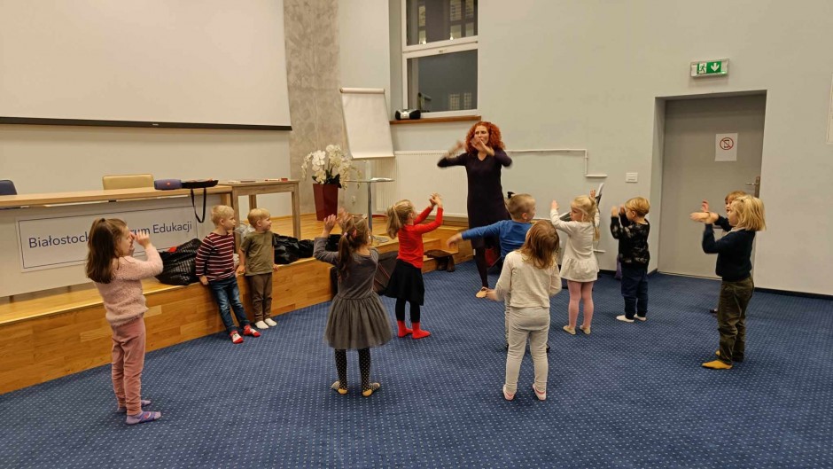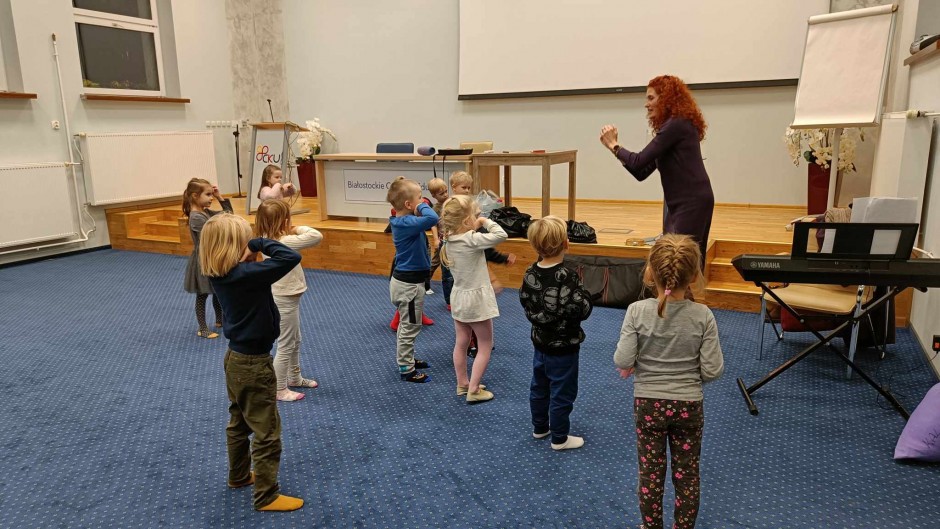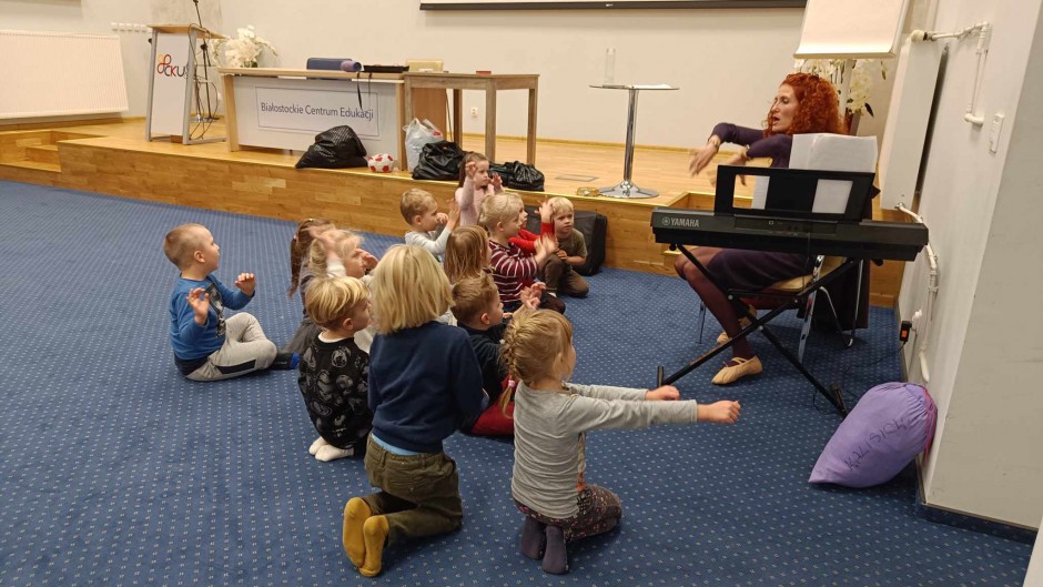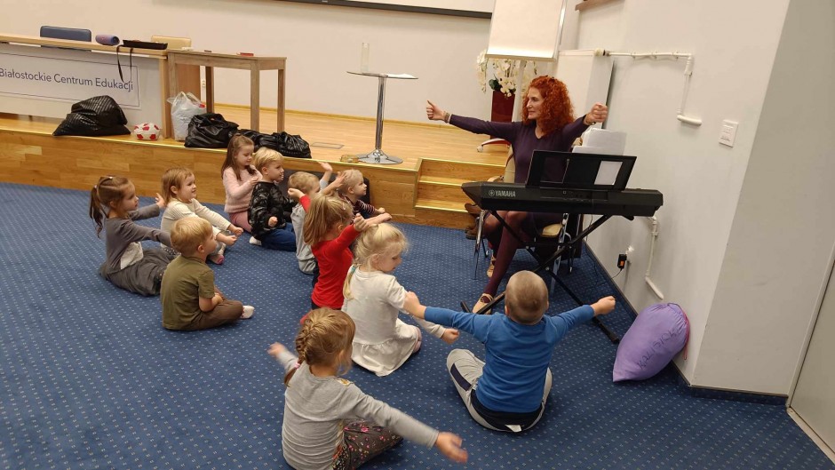 Strona główna / Galeria / Zajęcia umuzykalniające dla dzieci w wieku 4-5 lat Zajęcia umuzykalniające dla dzieci w wieku 4-5 lat Tweetnij Dodano: 2024-11-21 Autor: Białostocka Akademia Rodziny