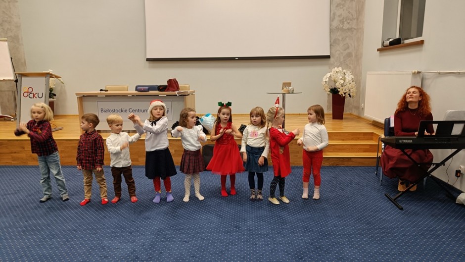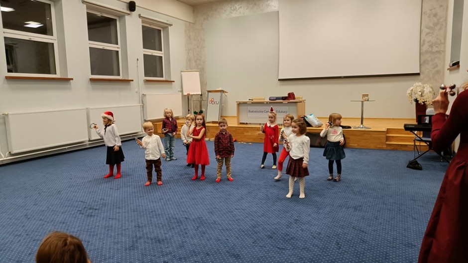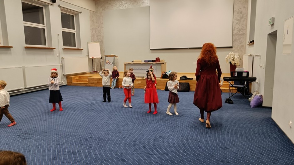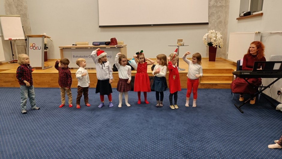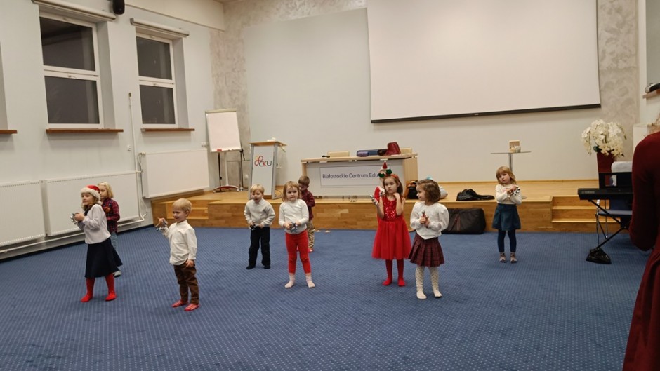 Strona główna / Galeria / Zajęcia umuzykalniające dla dzieci w wieku 4-5 lat Zajęcia umuzykalniające dla dzieci w wieku 4-5 lat Tweetnij Dodano: 2024-12-05 Autor: Białostocka Akademia Rodziny
